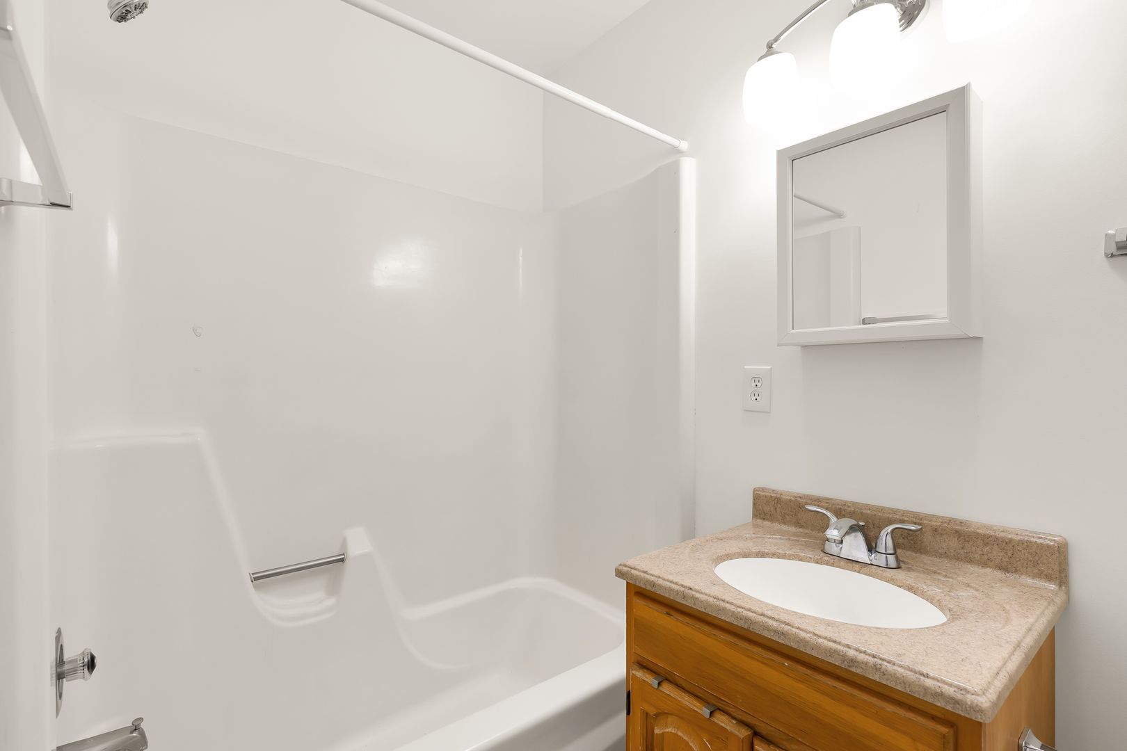 Refreshed Bathroom: Featuring updated fixtures, a modern vanity, and a crisp, polished look.